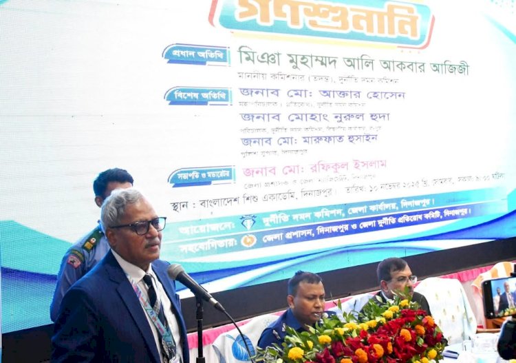 ১০ নভেম্বর ২০২৫ খ্রি. দুর্নীতি দমন কমিশন (দুদক), দিনাজপুরের আয়োজনে বাংলাদেশ শিশু একাডেমি মিলনায়তনে গণশুনানি অনুষ্ঠিত হয়। অনুষ্ঠানে প্রধান অতিথি হিসেবে উপস্থিত ছিলেন জনাব মিঞ্জা মুহাম্মাদ আলি আকবার আজিজী, মাননীয় কমিশনার (তদন্ত), দুর্নীতি দমন কমিশন মহোদয়।
